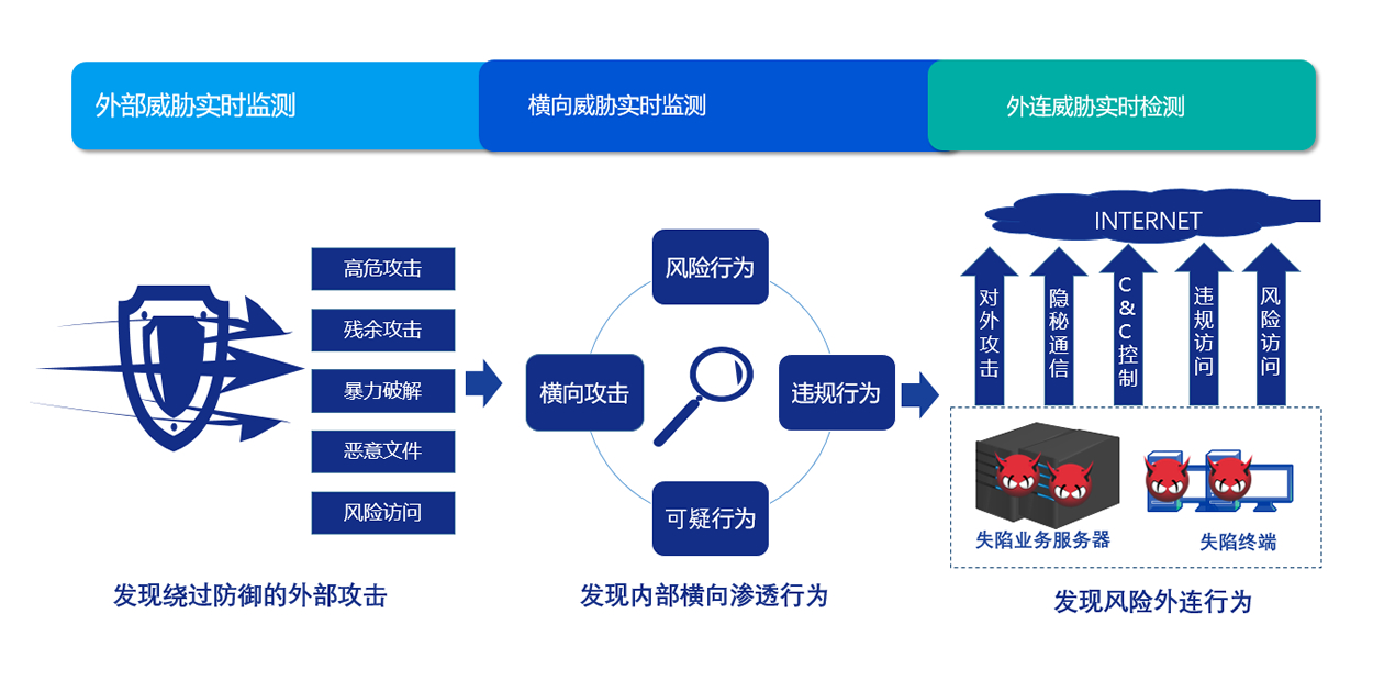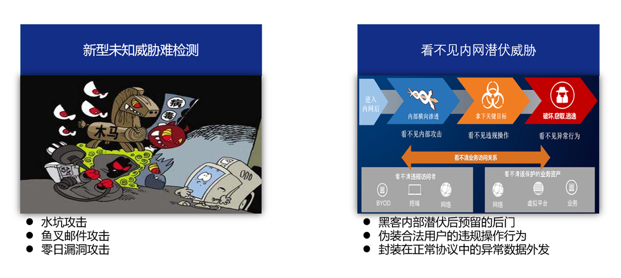 看(kàn)不(bù)見(jiàn)的(de)安全威脅: 靜(jìng)态特征檢測難以應對(duì)新型威脅,缺乏對(duì)內(nèi)網攻擊行(xíng)為(w↔èi)持續檢測手段